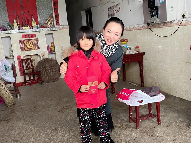 父親去世,母親改嫁,爺爺有糖尿病,奶奶有尿毒癥,從小隨爺爺奶奶長大的她,雖家庭貧困,仍品學兼優。董事長鄧倩女士在為她送上學費、學習用品、衣服等愛心的同時,鼓勵她自立自強,愛生活愛學習,并把作家劉瑜寫的《愿你慢慢長大》一書中的金句送給佳倩:“愿你有好運氣,如果沒有,愿你在不幸中學會慈悲;愿你被很多人愛,如果沒有,愿你在寂寞中學會寬容。”