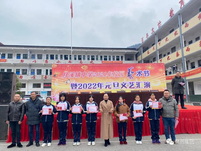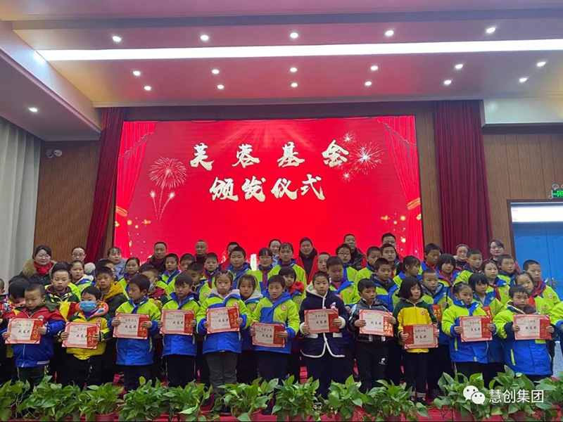 2021年12月29日上午,洞口縣芙蓉學校在學校報告廳舉行了2021年度“芙蓉基金”頒發儀式暨元旦聯誼活動。縣委、縣教育局、縣經開區、花古街道領導、慧創董事長鄧倩女士等一行共同參加了此次活動。在活動中,慧創董事長鄧倩女士為孩子們發放了“慧創獎學金”。